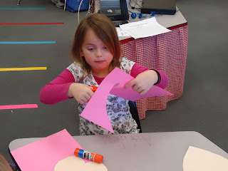 We had to find 100 chocolate kisses around the classroom and place them on a hundreds chart.